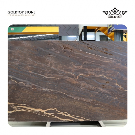 Brasilianischer Bronzit, geschätzt für seine einzigartige Ästhetik und robuste Eigenschaften, ist eine erstklassige Wahl für hochwertige Oberflächen im Innenbereich. Sein tief schokoladenbrauner Grundton, durchzogen von markanten Adern in Gold-, Rost- oder Kirschrot, erzeugt eine beeindruckende Optik mit einem dezenten metallischen Glanz. Dieser widerstandsfähige Stein aus Bahia, Brasilien, bietet hervorragende Härte für anspruchsvolle Anwendungen wie Küchenarbeitsplatten, Waschtische und Akzentwände und garantiert so Schönheit und Langlebigkeit.