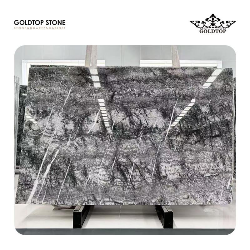 Italienischer Silberfichtenmarmor: Italienischer Silberfichtenmarmor – in seinen erlesenen Variationen auch bekannt als Fior di Bosco oder tief silbergrauer Marmor – wird wegen seiner dramatisch dunklen Basis geschätzt, die von Anthrazit bis Tiefschwarz reicht und elegant von filigranen weißen Adern und gelegentlichen leuchtenden Goldakzenten durchzogen ist.