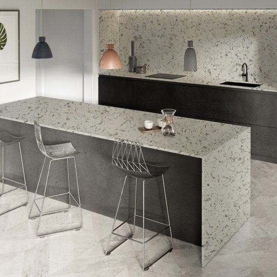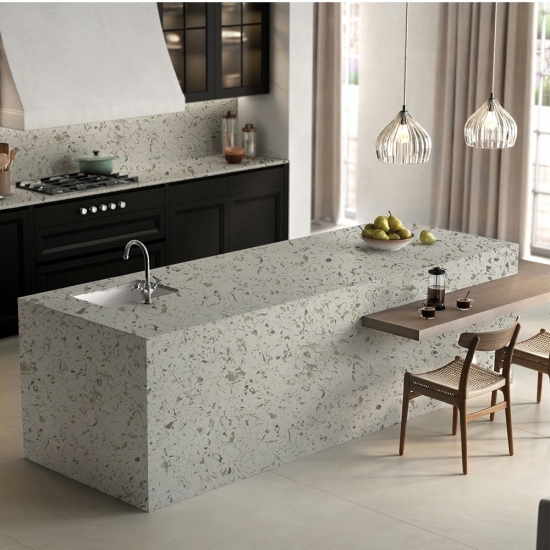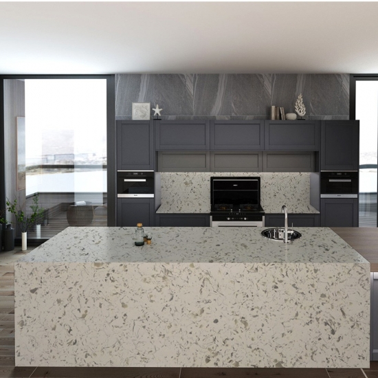 Sparkle Quartz Fish White ist ein speziell behandelter Quarzstein, der sich von anderen Serien durch sein besonders funkelndes Aussehen unterscheidet. Dieser Quarzstein verleiht Wänden, Böden, Arbeitsplatten etc. Tiefe und Struktur. Er eignet sich hervorragend für die Gestaltung von Wandverkleidungen und Waschbeckenrückwänden in Bad und Küche. Dank seiner keimfreien und feuchtigkeitsbeständigen Eigenschaften ist dieser Quarzstein ideal für Feuchträume.