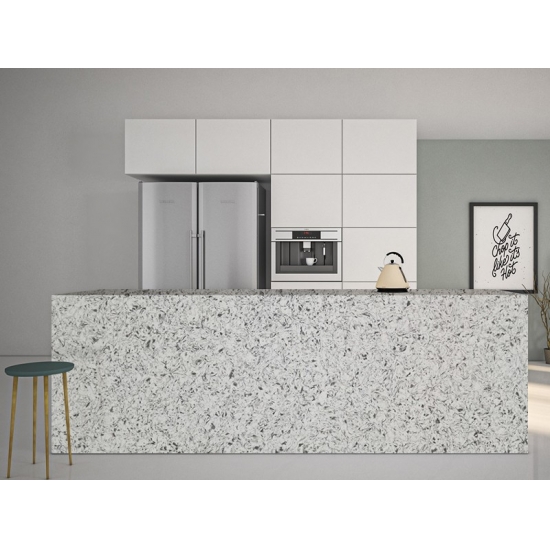 Wing Soar Dark Sparkle Quartz ist ein speziell behandelter Quarzstein, der sich von anderen Serien durch sein besonders funkelndes Aussehen unterscheidet. Dieser Quarzstein verleiht Wänden, Böden, Arbeitsplatten etc. Tiefe und Struktur. Er eignet sich hervorragend für die Gestaltung von beeindruckenden Wandverkleidungen und Waschbeckenrückwänden in Bad und Küche. Dank seiner keimfreien und feuchtigkeitsbeständigen Eigenschaften ist dieser Quarzstein ideal für Feuchträume.