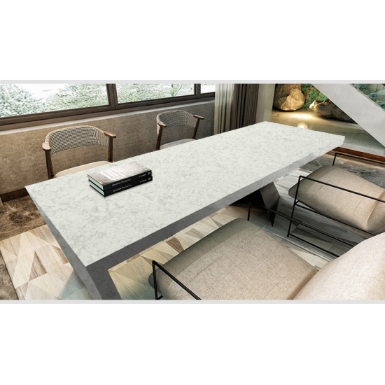 4003 Spire Marmor-Quarzplatte Diese Quarzplatte besticht durch ihre elegante und raffinierte Optik, inspiriert von natürlichem Marmor. Ihr sanfter, heller Hintergrund wird von einer anmutigen, fließenden Maserung akzentuiert, die Tiefe und optische Reize verleiht, ohne aufdringlich zu wirken. Der ausgewogene Kontrast zwischen der Grundfarbe und den feinen Adern erzeugt ein klares und zugleich anspruchsvolles Erscheinungsbild. Die Quarzplatte eignet sich ideal für private und gewerbliche Anwendungen und verleiht jedem Raum zeitlose Eleganz und dezenten Luxus.