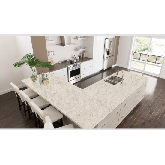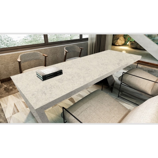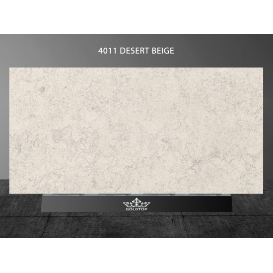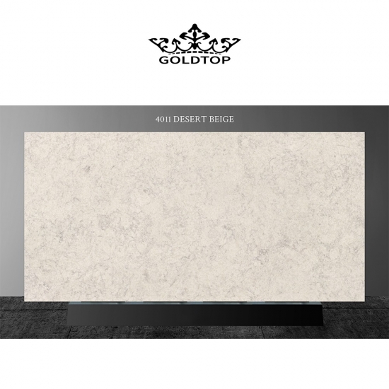 Quarzplatte aus Wüstenbeige-Marmor 4011 Die Quarzplatte besticht durch einen warmen, eleganten Beigeton mit sanften, natürlich wirkenden, marmorähnlichen Adern. Die subtilen Farbnuancen erzeugen eine ruhige und edle Oberfläche, die ein Gefühl von Ausgewogenheit und zeitloser Schönheit vermittelt. Ihre sanfte, neutrale Farbpalette verstärkt Licht und Raumwirkung und macht sie so vielseitig einsetzbar – sowohl für klassische als auch für moderne Interieurs. Diese Quarzplatte wurde entworfen, um Wärme und Eleganz zu verbreiten und verleiht jedem Raum, in dem sie verwendet wird, einen Hauch von dezentem Luxus.