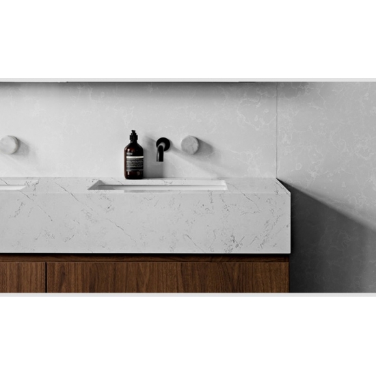 4025 Cecilia Weißer Marmorquarz Diese Quarzplatte besticht durch ihre klare, elegante Optik. Ihr strahlend weißer Grundton ist von zarten, dezenten grauen Adern durchzogen. Die Oberfläche strahlt eine ruhige Eleganz aus, da die sanften Adern der Platte eine natürliche Tiefe und Harmonie verleihen. Dieser Quarzstein vereint zeitlose Schönheit und Raffinesse und verleiht jedem Raum, in dem er verbaut wird, eine ruhige und luxuriöse Note.