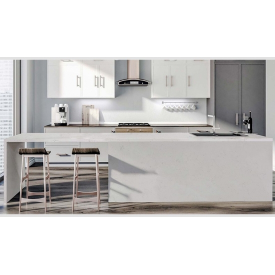 4037 Carrara Girgio Quarz vereint die klassische Schönheit von Carrara-Marmor in einer raffinierten, modernen Form. Mit seinen hellgrauen Adern, die sich elegant über die sanftweiße Oberfläche erstrecken, verleiht dieser Quarz zeitlose Eleganz. Die natürliche Maserung sorgt für Tiefe und Raffinesse und macht ihn zur idealen Wahl für traditionelle wie moderne Räume. Carrara Girgio ist perfekt für alle, die sich einen luxuriösen, hochwertigen Look mit dauerhafter Anziehungskraft wünschen.