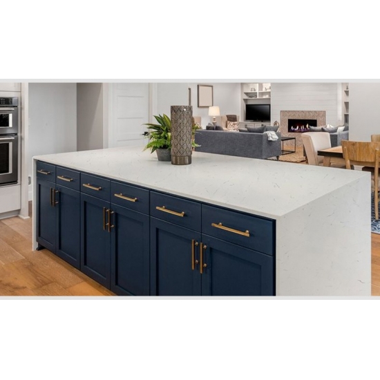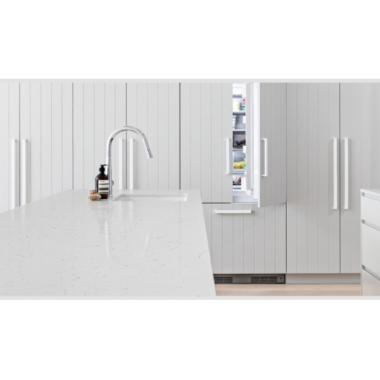 4047 Carrara Thread Marmorquarz Diese Quarzplatte besticht durch ihre klassische, elegante Optik mit einem sanften Weißton, der von feinen grauen Adern durchzogen ist. Die Oberfläche strahlt zeitlose Raffinesse aus, da die zarten Adern eine natürliche Bewegung und Tiefe erzeugen, ohne den Raum zu erdrücken. Diese Quarzplatte wurde entworfen, um Innenräume mit einer raffinierten, unaufdringlichen Schönheit zu bereichern und Arbeitsplatten, Waschtischen und anderen Anwendungen ein Gefühl von Ruhe und Luxus zu verleihen.