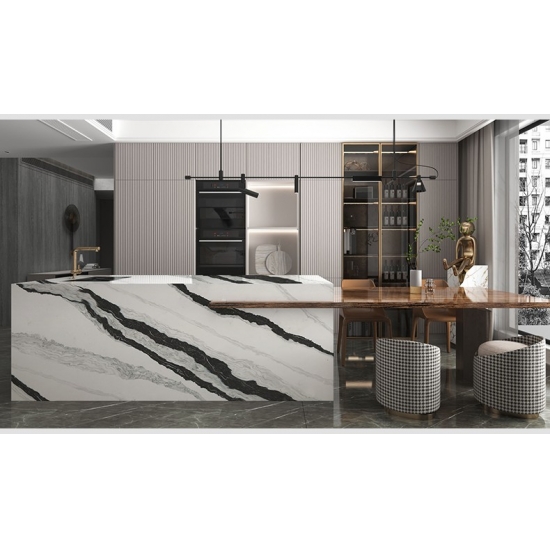 Die Quarzplatte 5008 Panda White besticht durch ihre klare und moderne Ästhetik. Ihr strahlend weißes Grundweiß wird von sanften grauen Adern dezent hervorgehoben. Das harmonische Zusammenspiel der feinen Adern und des Hintergrunds verleiht der Platte eine subtile Tiefe und Lebendigkeit. Diese Platte bietet zeitlose und vielseitige Eleganz und eignet sich ideal, um in jedem modernen Raum eine ruhige und anspruchsvolle Atmosphäre zu schaffen.