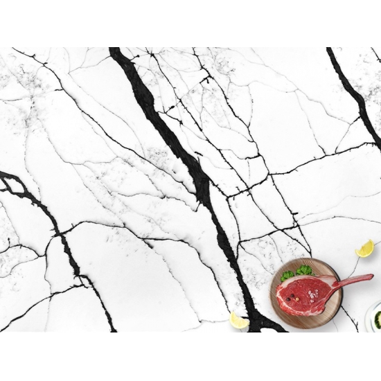 Calacatta-Quarz besteht aus natürlichen Bestandteilen, ist aber dennoch robust, langlebig und porenarm, wodurch Steinprodukte aus Quarz nahezu verschleißfrei sind. Langlebigkeit, Komfort und ein gleichmäßiges Muster sind die Hauptgründe für die wachsende Beliebtheit von Quarzstein. Quarzstein besteht zu 90 % aus Naturstein; der Rest sind Bindemittel, Farbstoffe und Zusatzstoffe, die die technischen Eigenschaften des Steins verbessern. Wasserdurchlässigkeit und Fleckenbeständigkeit ergänzen die Schönheit von Quarzstein.