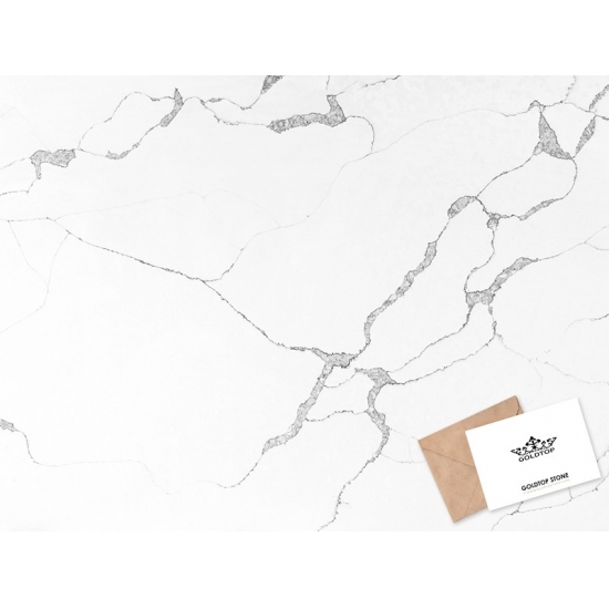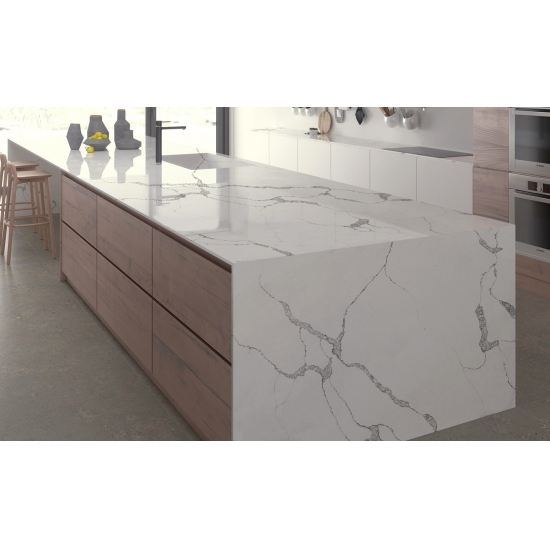 Die Calacatta-Serie ist derzeit das beliebteste Quarzsteinprodukt. Exquisit und einzigartig, besticht Calacatta-Quarz durch sein reines Weiß und die markante, durchgefärbte Marmoroptik. Mit seinem wunderschönen, breiten Adernmuster und der luxuriösen Haptik bietet dieser Quarz die natürliche Optik von Calacatta-Marmor, jedoch ohne dessen Nachteile. Calacatta-Quarz ist eine äußerst robuste, flecken- und kratzfeste Arbeitsplatte und somit eine sehr praktische Wahl für Küchen- und Badezimmerarbeitsplatten, Treppen, Fensterbänke, maßgefertigte Möbel, Wand- und Bodenbeläge im Innen- und Außenbereich, Wasserstrahlschneidtechniken und andere Designprojekte.