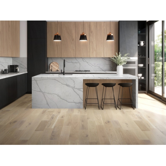 Dieser Quarz eignet sich perfekt für vielfältige Anwendungen, von Arbeitsplatten und Kücheninseln bis hin zu Akzentwänden und Waschtischen. Seine markante Maserung verleiht ihm Charakter und Eleganz und macht ihn zum Blickfang in jedem Design. Ob kombiniert mit edlen Metallic-Tönen oder warmen Holznuancen – der Quarz 5125 Calacatta Fiorina unterstreicht die Eleganz jedes Raumes.