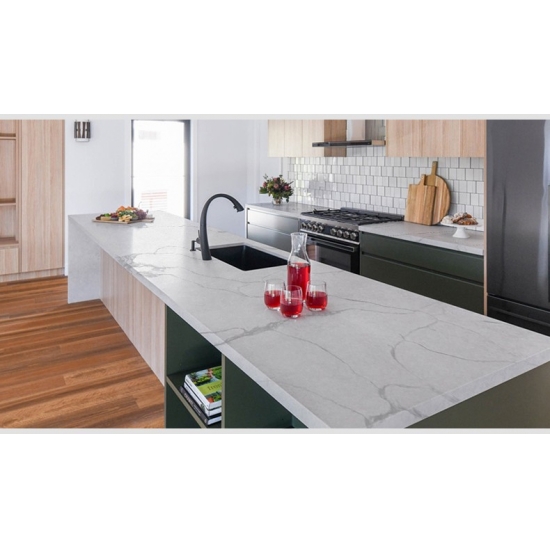 Die Quarzplatte 5034 Starry besticht durch ihren faszinierenden dunklen Grundton, der von leuchtenden, sternförmigen Kristallpartikeln durchzogen ist. Dieser eindrucksvolle Kontrast erzeugt ein Gefühl von Tiefe und himmlischer Schönheit. Die Platte strahlt eine kühne, moderne Eleganz aus und setzt mit ihrem betörenden, luxuriösen Charme in zeitgenössischen Räumen ein markantes Statement.