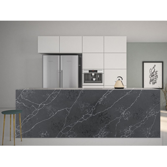 Calacatta-Quarz besteht aus natürlichen Bestandteilen, ist aber dennoch robust, langlebig und porenarm, wodurch Steinprodukte aus Quarz nahezu verschleißfrei sind. Langlebigkeit, Komfort und ein gleichmäßiges Muster sind die Hauptgründe für die wachsende Beliebtheit von Quarzstein. Quarzstein besteht zu 90 % aus Naturstein; der Rest sind Bindemittel, Farbstoffe und Zusatzstoffe, die die technischen Eigenschaften des Steins verbessern. Wasserdurchlässigkeit und Fleckenbeständigkeit ergänzen die Schönheit von Quarzstein.