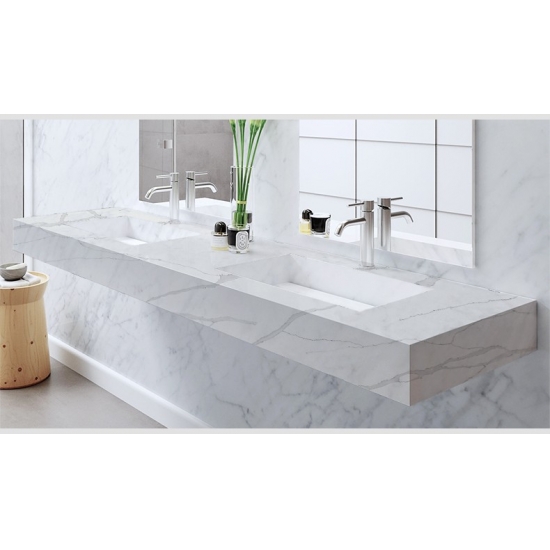 Die Quarzplatte 5040 Cascade präsentiert sich in einem klaren Weiß, das von markanten, ausdrucksstarken grauen Adern durchzogen wird. Der eindrucksvolle Kontrast erzeugt eine kraftvolle Dynamik und Tiefe. Diese Platte besticht durch dynamische Eleganz und eignet sich ideal, um ein modernes Statement zu setzen und jedem Raum lebendigen, zeitgemäßen Luxus zu verleihen.