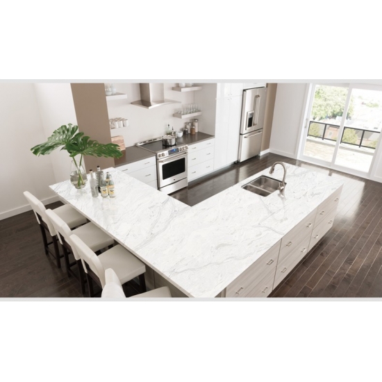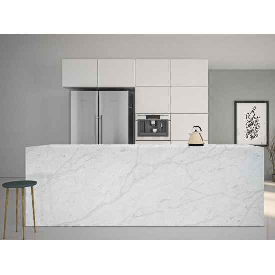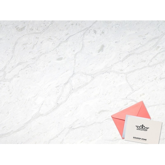 Gucci Quartz – Diese extragroße Quarzplatte aus hochwertigem Quarz besticht durch ihre strahlend weiße Farbe und ist somit eine vielseitige und elegante Option für jedes Designkonzept. Sie ist robust, pflegeleicht sowie kratz- und fleckenbeständig und daher ideal für stark frequentierte Bereiche. Dank ihrer imposanten Größe eignet sich Gucci Quartz perfekt für die Gestaltung fugenloser Oberflächen und ist somit ideal für Küchenarbeitsplatten, Waschtische und vieles mehr.