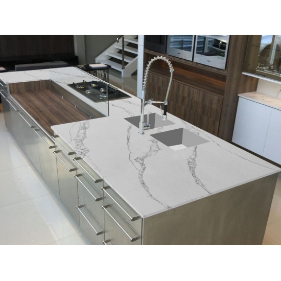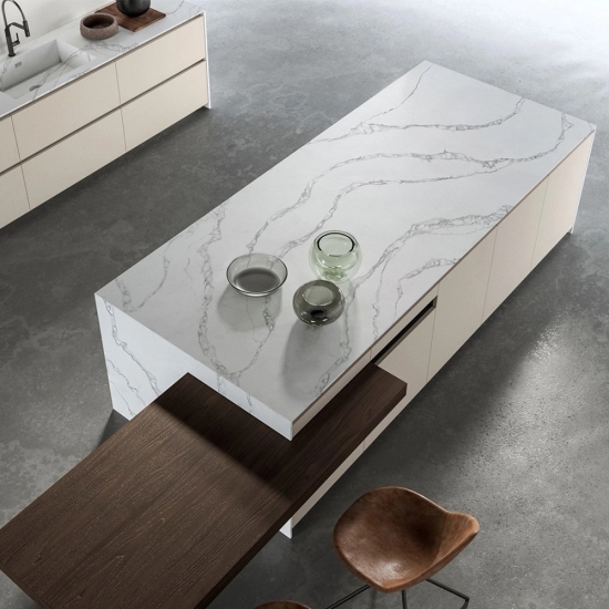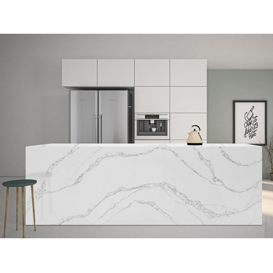 5045 River Valley White Calacatta Quartz With Grey Texture 5045 River Valley White Calacatta Quartz With Grey Texture
