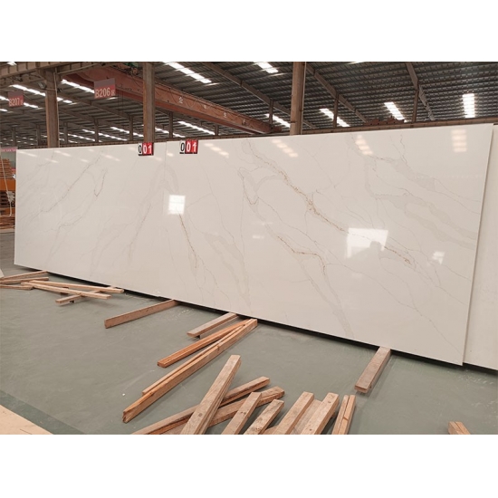 Die Quarzplatte 5052 Calacatta Leon besticht durch ihre strahlend weiße Oberfläche, die von markanten, ausdrucksstarken Grautönen durchzogen ist. Der eindrucksvolle Kontrast erzeugt eine kraftvolle und dynamische Optik. Diese Platte verkörpert luxuriöse Modernität und setzt in jedem zeitgenössischen Interieur ein stilvolles Statement.
