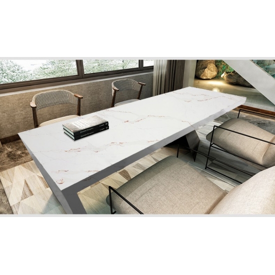 Calacatta-Quarz besteht aus natürlichen Bestandteilen, ist aber dennoch robust, langlebig und porenarm, wodurch Steinprodukte aus Quarz nahezu verschleißfrei sind. Langlebigkeit, Komfort und ein gleichmäßiges Muster sind die Hauptgründe für die wachsende Beliebtheit von Quarzstein. Quarzstein besteht zu 90 % aus Naturstein; der Rest sind Bindemittel, Farbstoffe und Zusatzstoffe, die die technischen Eigenschaften des Steins verbessern. Wasserdurchlässigkeit und Fleckenbeständigkeit ergänzen die Schönheit von Quarzstein.