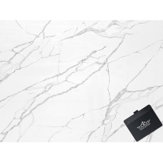 Calacatta-Quarz besteht aus natürlichen Bestandteilen, ist aber dennoch robust, langlebig und porenarm, wodurch Steinprodukte aus Quarz nahezu verschleißfrei sind. Langlebigkeit, Komfort und ein gleichmäßiges Muster sind die Hauptgründe für die wachsende Beliebtheit von Quarzstein. Quarzstein besteht zu 90 % aus Naturstein; der Rest sind Bindemittel, Farbstoffe und Zusatzstoffe, die die technischen Eigenschaften des Steins verbessern. Wasserdurchlässigkeit und Fleckenbeständigkeit ergänzen die Schönheit von Quarzstein.