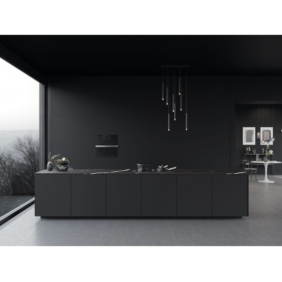 5128 Fior Bosco Quarz besticht durch seine edle graue Oberfläche, die von zarten, organischen Adern durchzogen ist und an die friedvolle Schönheit einer Waldlandschaft erinnert. Jede Platte präsentiert sich als einzigartige Komposition aus Farbtiefe und fließender Maserung und verleiht jedem Interieur eine moderne und atmosphärische Ruhe. Die leuchtende Oberfläche verstärkt die Lichtreflexion und erzeugt einen dynamischen visuellen Effekt – ideal für Küchenarbeitsplatten, Waschtische und Akzentwände.
