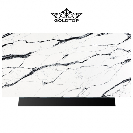 Die Quarzplatte 5087 Calacatta River Black besticht durch ihre einzigartige Mischung aus Schwarz- und Weißtönen. Jede Platte ist ein Meisterwerk, das Klasse und Eleganz ausstrahlt. Unser Expertenteam fertigt jede Platte mit Präzision und Sorgfalt und garantiert so Langlebigkeit und Beständigkeit.