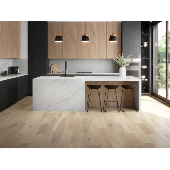 Exquisit und einzigartig: Calacatta-Quarz besticht durch sein reines Weiß und die markante, durchgefärbte Marmoroptik. Mit seinem wunderschönen, breiten Adernmuster und der luxuriösen Haptik bietet dieser Quarz die natürliche Optik von Calacatta-Marmor, jedoch ohne dessen Nachteile. Calacatta-Quarz ist eine äußerst robuste, flecken- und kratzfeste Arbeitsplatte und somit eine sehr praktische Wahl für Küchen- und Badezimmerarbeitsplatten, Treppen, Fensterbänke, maßgefertigte Möbel, Wand- und Bodenbeläge im Innen- und Außenbereich, Wasserstrahlschneidarbeiten und andere Designprojekte.