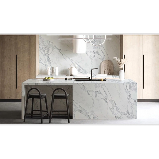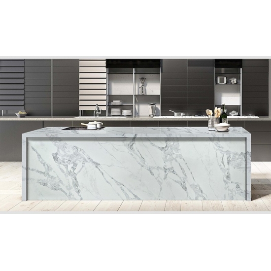 50 Square MetersExquisit und einzigartig: Calacatta-Quarz besticht durch sein reines Weiß und die markante, durchgefärbte Marmoroptik. Mit seinem wunderschönen, breiten Adernmuster und der luxuriösen Haptik bietet dieser Quarz die natürliche Optik von Calacatta-Marmor, jedoch ohne dessen Nachteile. Calacatta-Quarz ist eine äußerst robuste, flecken- und kratzfeste Arbeitsplatte und somit eine sehr praktische Wahl für Küchen- und Badezimmerarbeitsplatten, Treppen, Fensterbänke, maßgefertigte Möbel, Wand- und Bodenbeläge im Innen- und Außenbereich, Wasserstrahlschneidarbeiten und andere Designprojekte.