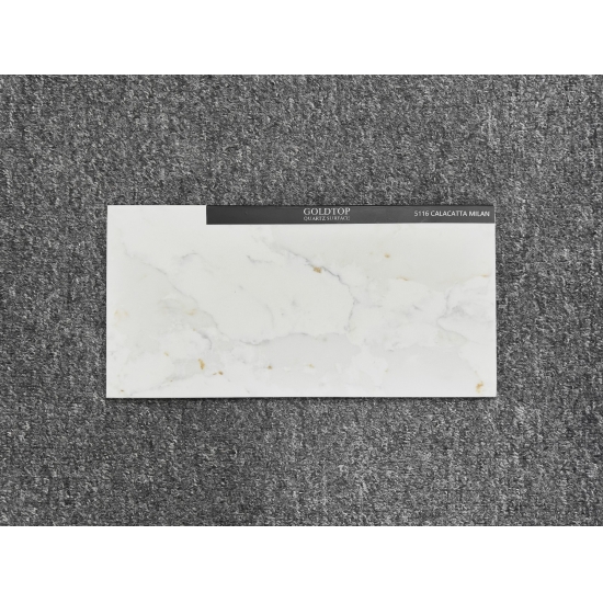 50 Square MetersExquisit und einzigartig: Calacatta-Quarz besticht durch sein reines Weiß und die markante, durchgefärbte Marmoroptik. Mit seinem wunderschönen, breiten Adernmuster und der luxuriösen Haptik bietet dieser Quarz die natürliche Optik von Calacatta-Marmor, jedoch ohne dessen Nachteile. Calacatta-Quarz ist eine äußerst robuste, flecken- und kratzfeste Arbeitsplatte und somit eine sehr praktische Wahl für Küchen- und Badezimmerarbeitsplatten, Treppen, Fensterbänke, maßgefertigte Möbel, Wand- und Bodenbeläge im Innen- und Außenbereich, Wasserstrahlschneidarbeiten und andere Designprojekte.