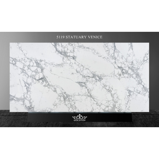 Die Calacatta-Serie ist derzeit das beliebteste Quarzsteinprodukt. Exquisit und einzigartig, besticht Calacatta-Quarz durch sein reines Weiß und die markante, durchgefärbte Marmoroptik. Mit seinem wunderschönen, breiten Adernmuster und der luxuriösen Haptik bietet dieser Quarz die natürliche Optik von Calacatta-Marmor, jedoch ohne dessen Nachteile. Calacatta-Quarz ist eine äußerst robuste, flecken- und kratzfeste Arbeitsplatte und somit eine sehr praktische Wahl für Küchen- und Badezimmerarbeitsplatten, Treppen, Fensterbänke, maßgefertigte Möbel, Wand- und Bodenbeläge im Innen- und Außenbereich, Wasserstrahlschneidtechniken und andere Designprojekte.
