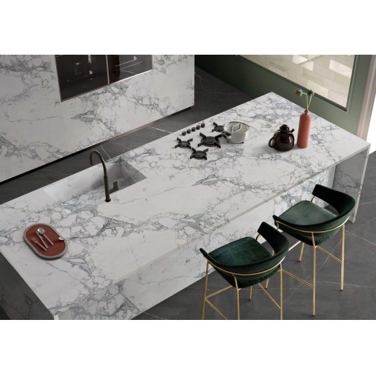 Exquisit und einzigartig: Calacatta-Quarz besticht durch sein reines Weiß und die markante, durchgefärbte Marmoroptik. Mit seinem wunderschönen, breiten Adernmuster und der luxuriösen Haptik bietet dieser Quarz die natürliche Optik von Calacatta-Marmor, jedoch ohne dessen Nachteile. Calacatta-Quarz ist eine äußerst robuste, flecken- und kratzfeste Arbeitsplatte und somit eine sehr praktische Wahl für Küchen- und Badezimmerarbeitsplatten, Treppen, Fensterbänke, maßgefertigte Möbel, Wand- und Bodenbeläge im Innen- und Außenbereich, Wasserstrahlschneidarbeiten und andere Designprojekte.