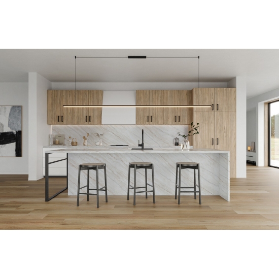 Exquisit und einzigartig: Calacatta-Quarz besticht durch sein reines Weiß und die markante, durchgefärbte Marmoroptik. Mit seinem wunderschönen, breiten Adernmuster und der luxuriösen Haptik bietet dieser Quarz die natürliche Optik von Calacatta-Marmor, jedoch ohne dessen Nachteile. Calacatta-Quarz ist eine äußerst robuste, flecken- und kratzfeste Arbeitsplatte und somit eine sehr praktische Wahl für Küchen- und Badezimmerarbeitsplatten, Treppen, Fensterbänke, maßgefertigte Möbel, Wand- und Bodenbeläge im Innen- und Außenbereich, Wasserstrahlschneidarbeiten und andere Designprojekte.