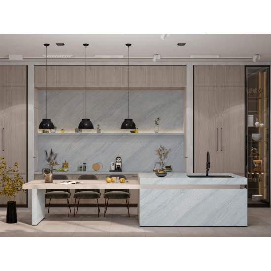 Die Calacatta-Serie ist derzeit das beliebteste Quarzsteinprodukt. Exquisit und einzigartig, besticht Calacatta-Quarz durch sein reines Weiß und die markante, durchgefärbte Marmoroptik. Mit seinem wunderschönen, breiten Adernmuster und der luxuriösen Haptik bietet dieser Quarz die natürliche Optik von Calacatta-Marmor, jedoch ohne dessen Nachteile. Calacatta-Quarz ist eine äußerst robuste, flecken- und kratzfeste Arbeitsplatte und somit eine sehr praktische Wahl für Küchen- und Badezimmerarbeitsplatten, Treppen, Fensterbänke, maßgefertigte Möbel, Wand- und Bodenbeläge im Innen- und Außenbereich, Wasserstrahlschneidtechniken und andere Designprojekte.