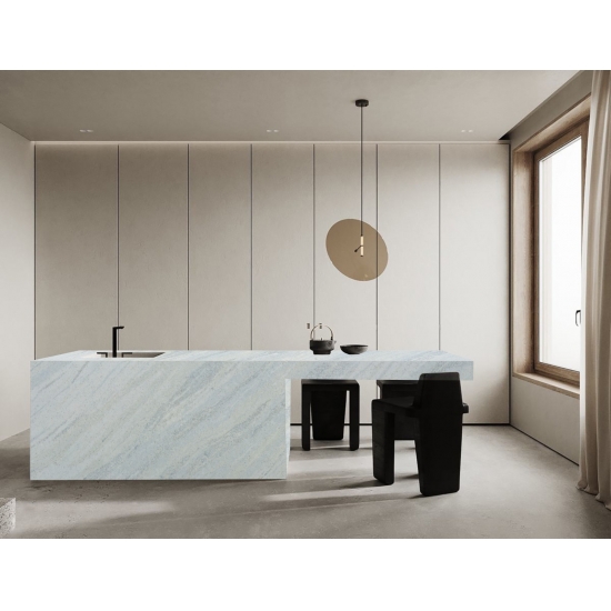Der Quarzstein Caesar 4051 Organic White Zero Silicon besticht durch seine reinweiße Oberfläche und seine umweltfreundliche, siliziumfreie Zusammensetzung, die eine ungiftige und sichere Anwendung gewährleistet. Zu seinen Vorteilen zählen hohe Langlebigkeit, einfache Pflege und ein modernes, minimalistisches Design. Damit eignet er sich ideal für Küchen- und Badezimmerarbeitsplatten in gesundheitsbewussten Haushalten.