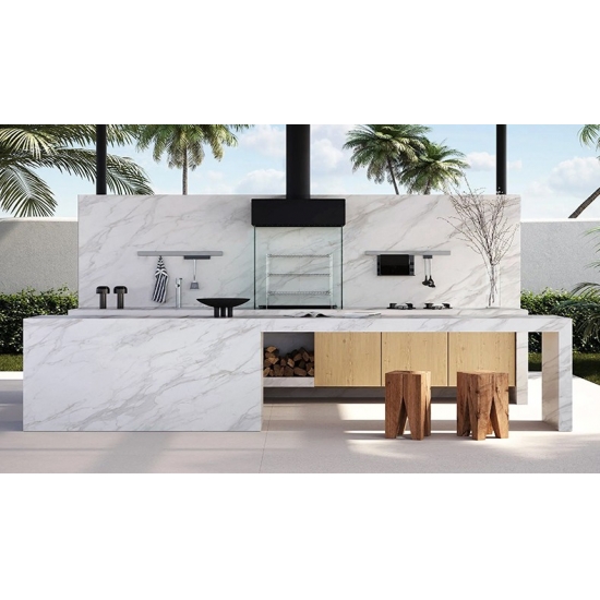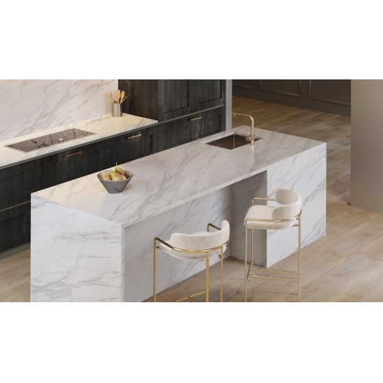 Dieses Quarzmaterial besticht durch eine raffinierte und elegante Ästhetik. Der sanfte weiße Hintergrund wird von zarten, fließenden grauen Adern akzentuiert. Die subtilen Adernmuster erzeugen ein natürliches und harmonisches Erscheinungsbild und verleihen der Oberfläche Tiefe, ohne sie zu überladen. Der Quarz strahlt einen Hauch von unaufdringlichem Luxus aus, vereint Reinheit und Raffinesse und eignet sich ideal für die Gestaltung heller, zeitloser Räume mit einer ruhigen und anmutigen Atmosphäre.