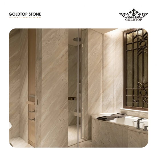 Roma Imperiale Quarzit, auch Roma Imperiale Quarzit genannt, ist eine Art Naturstein, der für sein elegantes und luxuriöses Aussehen bekannt ist. Es handelt sich um eine Quarzitart, die in Brasilien abgebaut wird und sich durch subtile Maserungen und warme Farbtöne auszeichnet. Roma Imperiale Quarzit hat typischerweise eine beige oder cremefarbene Basis mit durchgehenden Adern in dunklerem Braun, Grau oder Schwarz. Diese Venen können dick oder dünn sein und verschiedene Muster bilden, beispielsweise linear oder wirbelnd. Der Stein hat eine natürliche, strukturierte Oberfläche, die jedem Raum Tiefe und Dimension verleiht. Dieser elegante exotische Stein eignet sich besonders gut für Arbeitsplatten, Denkmäler, Mosaike, Außen- und Innenwand- und Bodenanwendungen, Springbrunnen, Pool- und Wandverkleidungen, Treppen, Fensterbänke und andere Designprojekte.