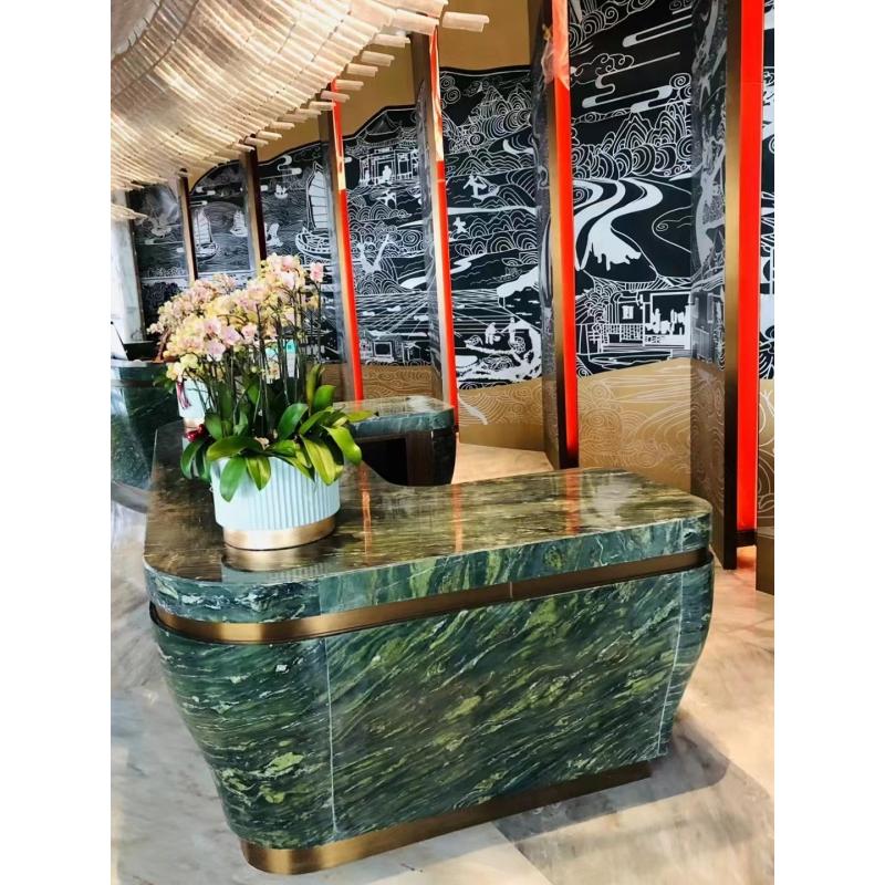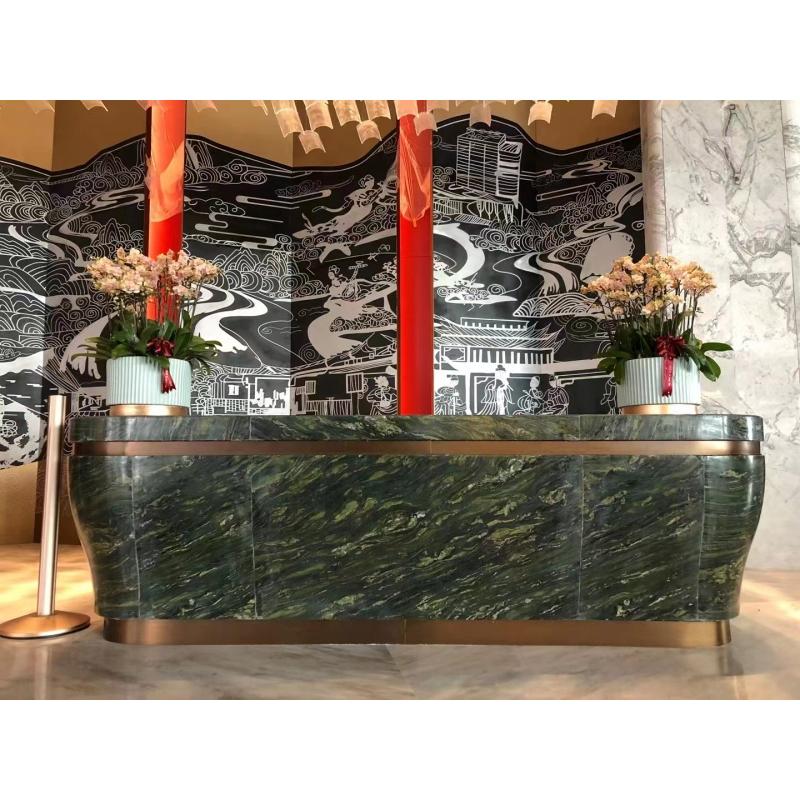 Arbeitsplatten aus grünem Seidenquarzit sind bekannt für ihre einzigartige grüne Maserung und ihren seidigen Glanz und verleihen Küchen und Bädern natürliche Eleganz. Quarzit ist ein äußerst langlebiges Material, kratzfest und temperaturbeständig sowie leicht zu reinigen und zu pflegen. Dieser Stein eignet sich perfekt für moderne und klassische Innenräume und vereint Schönheit und Funktionalität und verleiht jedem Raum einen Hauch von Raffinesse.